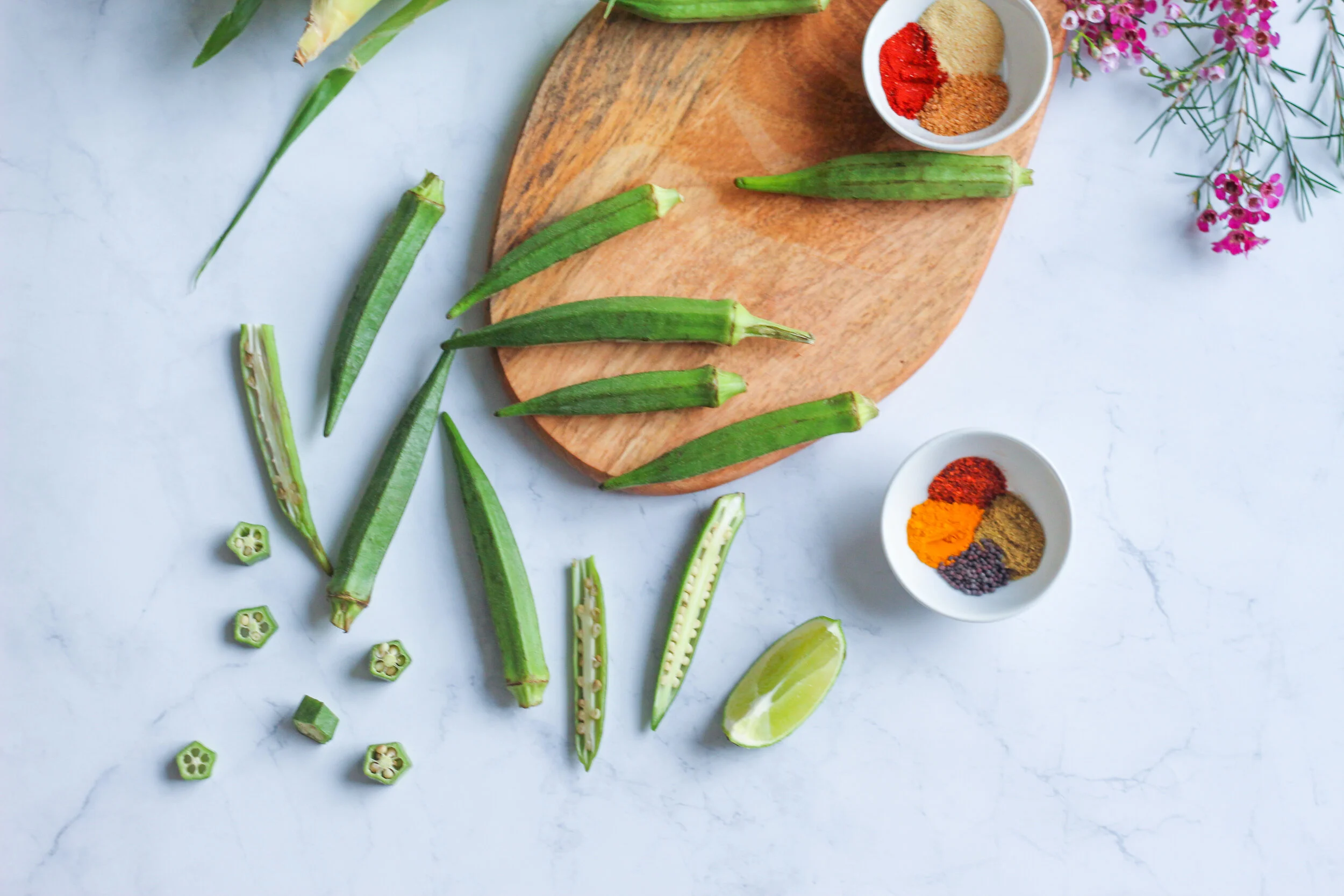 Okra is by far my favorite vegetable. I say that often and usually get the response that people either don’t like it or have never had it. When I heard my friend and fellow chef, Ruchi of Tiffin Kitchen, say that she loved okra and that her mom cooks it perfectly, I knew we had to work together to change the bad wrap that okra has.