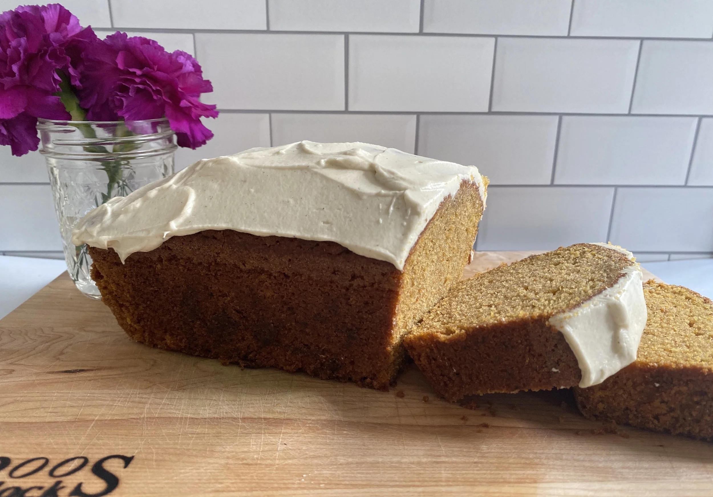 - To prepare the frosting, combine the softened cream cheese and butter in a large bowl using a handheld mixer. Once combined, add Chai High Tea Simple Syrup, powdered sugar, and vanilla extract. Spread the frosting over the top of the bread once it has been inverted out of the loaf pan.